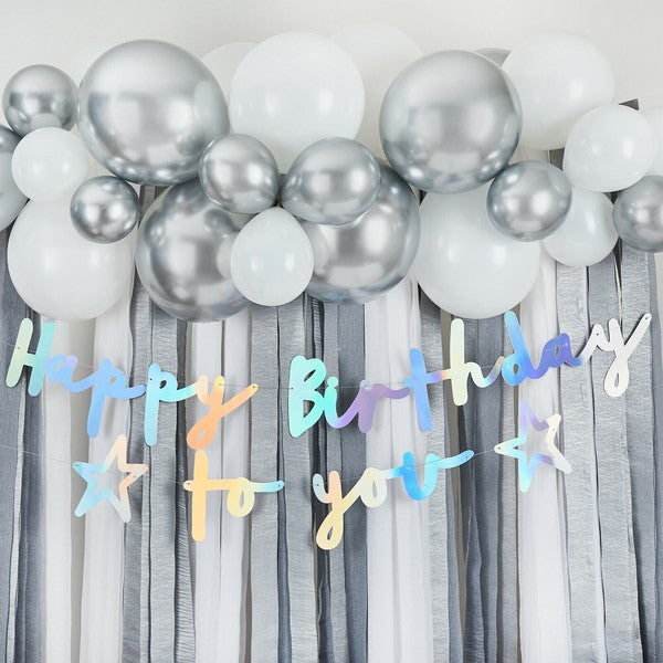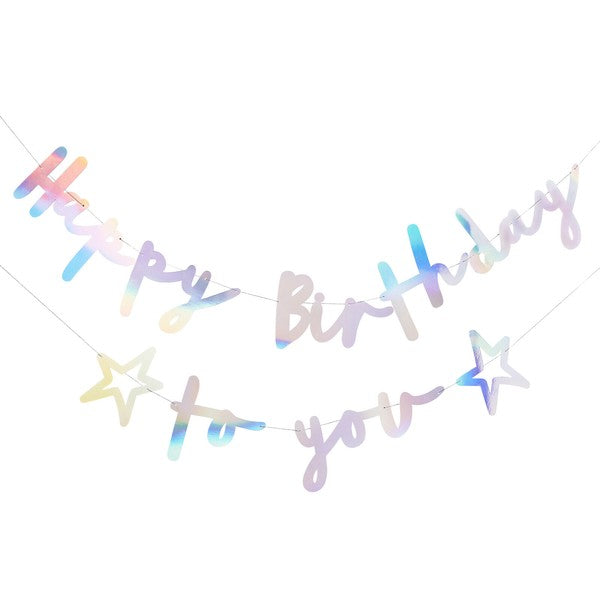 オーロラの様にキラキラと輝く素材でHAPPY BIRTHDAY TO YOUと書かれたガーランドです。