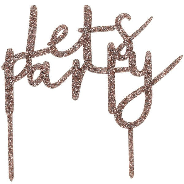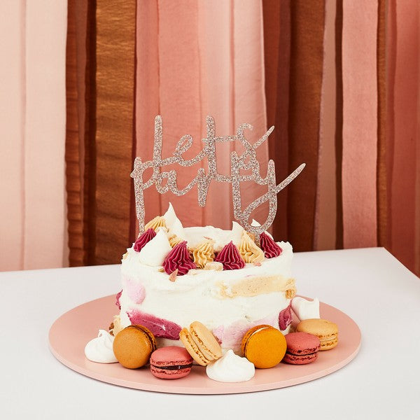 キラキラと輝きながらも、落ち着いたトーンのローズゴールドのグリッターケーキトッパー。グリッターがキラキラと輝き、高級感を演出してくれます。