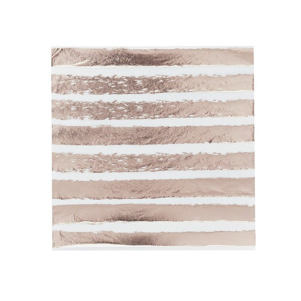 ローズゴールドのベースに手書き風のストライプが入ったペーパーナプキンのセットです。