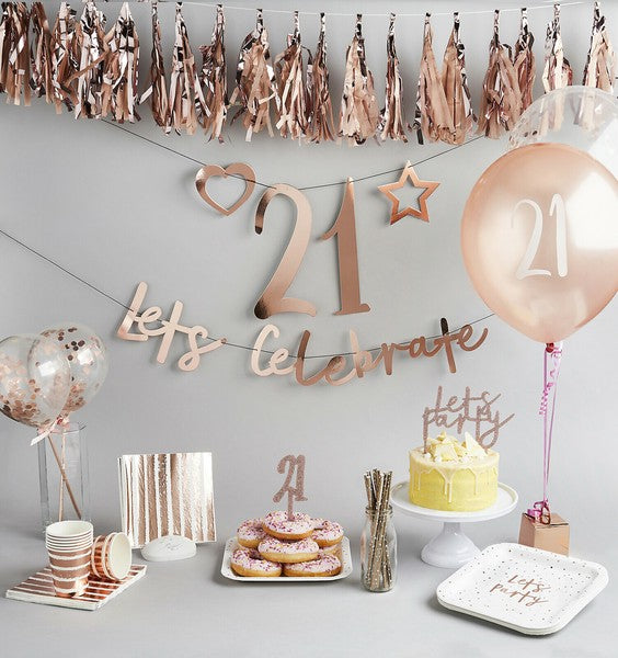 ラグジュアリー感たっぷりのローズゴールドがメインカラーのパーティーデコレーションのシリーズ。