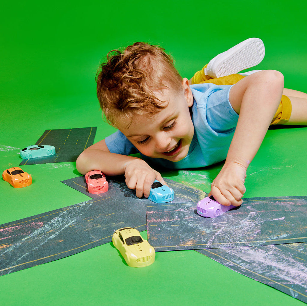 子どもたちの創造力をくすぐる、レーシングカー型のユニークなチョークセットです。
