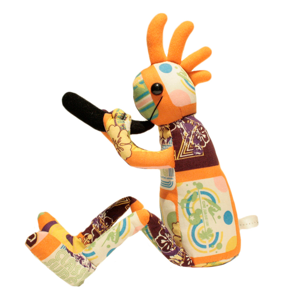 ネイティブ・アメリカンに伝わる精霊で、「ココペリ」が笛を吹き、幸福を運んでくると信じられています。その「ココペリ」が虹を渡り、Hawaii(虹の国)へ辿り着きました。