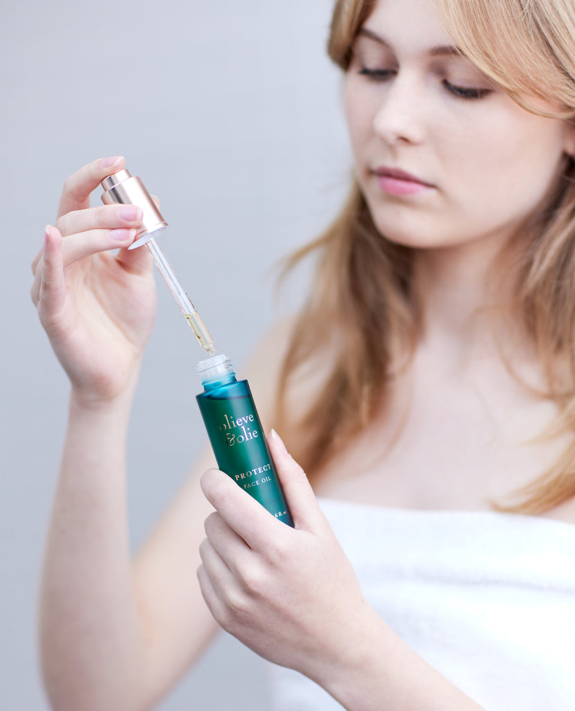 洗顔後、化粧水を塗った後乾いた手のひらに2-3滴のフェイスオイルを取り顔になじませます。