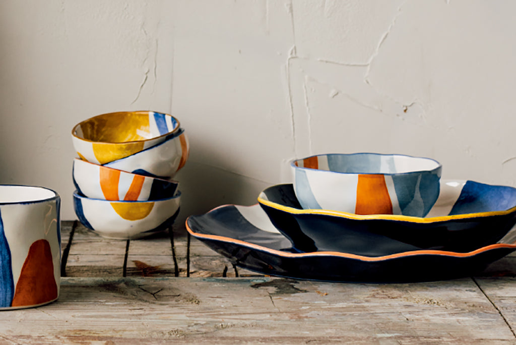 カナダのDanica Studioがデザインした陶器で、縁取りの手描きのデザインがアクセントになっています。