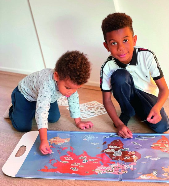 世界の色々な大陸や海洋にいる動物たちがどこに住んでいるのか、家族やお友達と一緒に学びながら遊べるアイテムです。