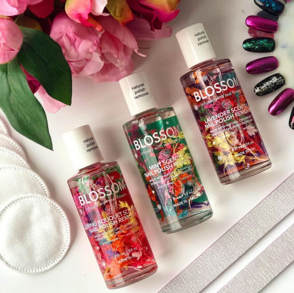瓶の中にお花がたくさん入ったかわいらしいリムーバーです。適量をコットンに取り、数秒間置いてから拭き取ります。