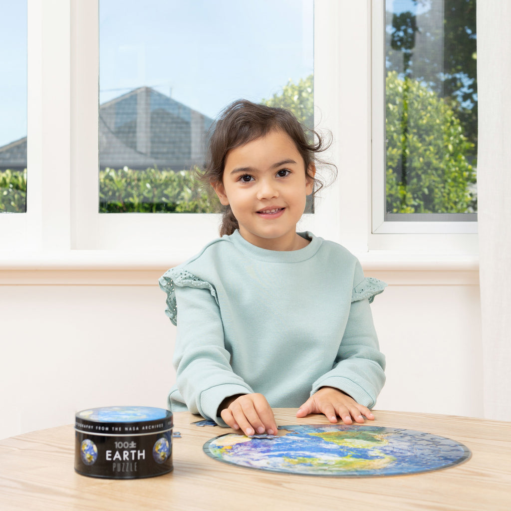 完成させると直径30cmのサイズになる地球のパズルです。パズルの他、地球のスペックが記された紙面も入っています。