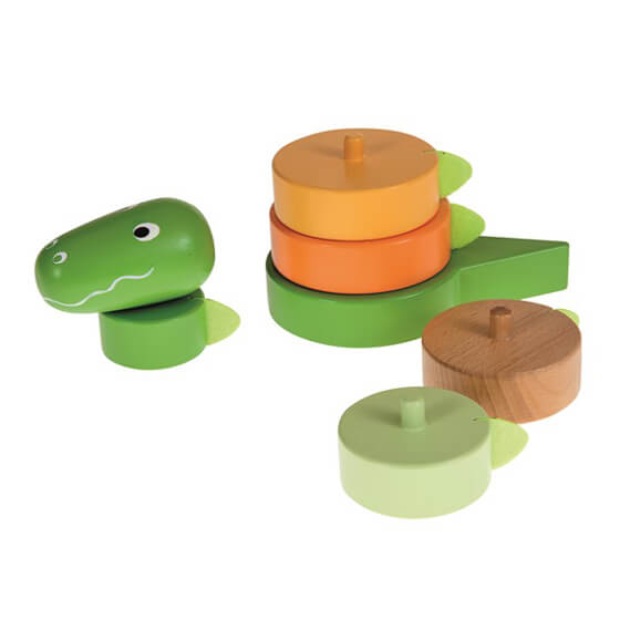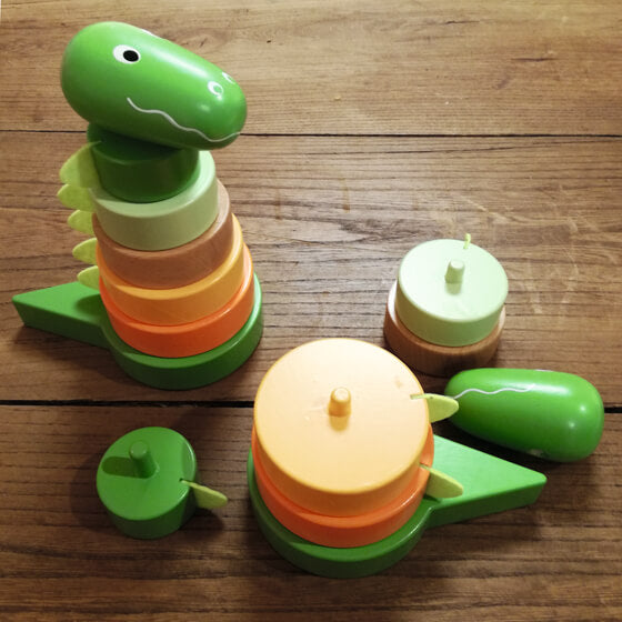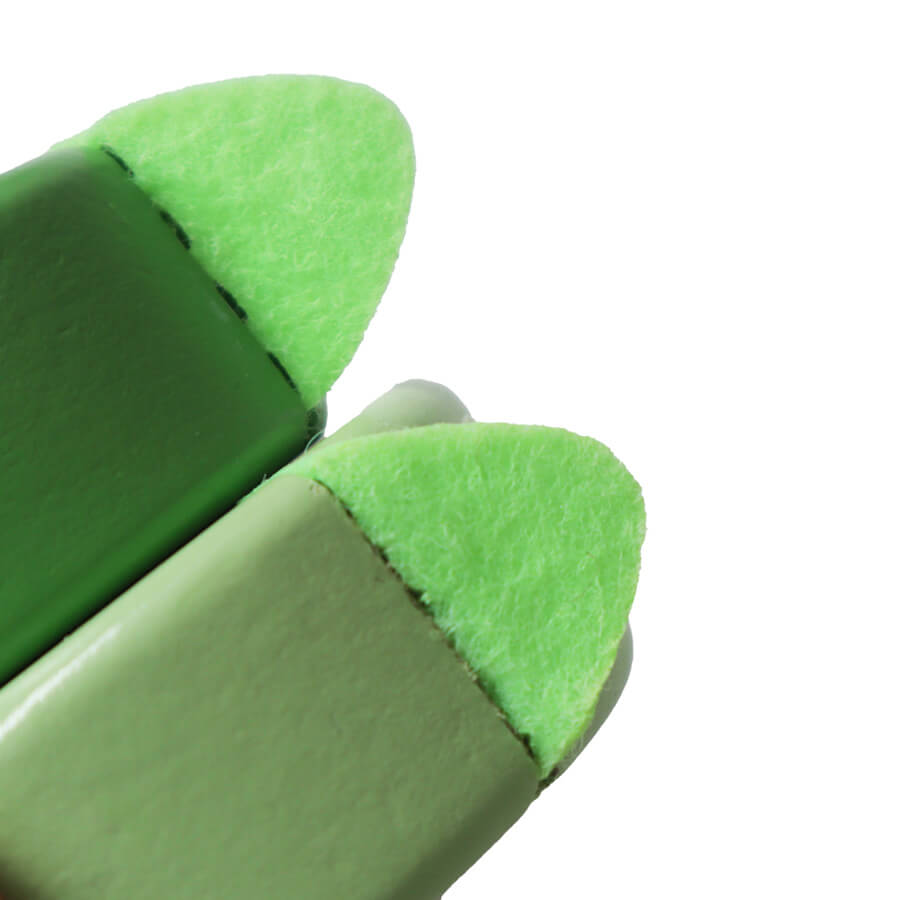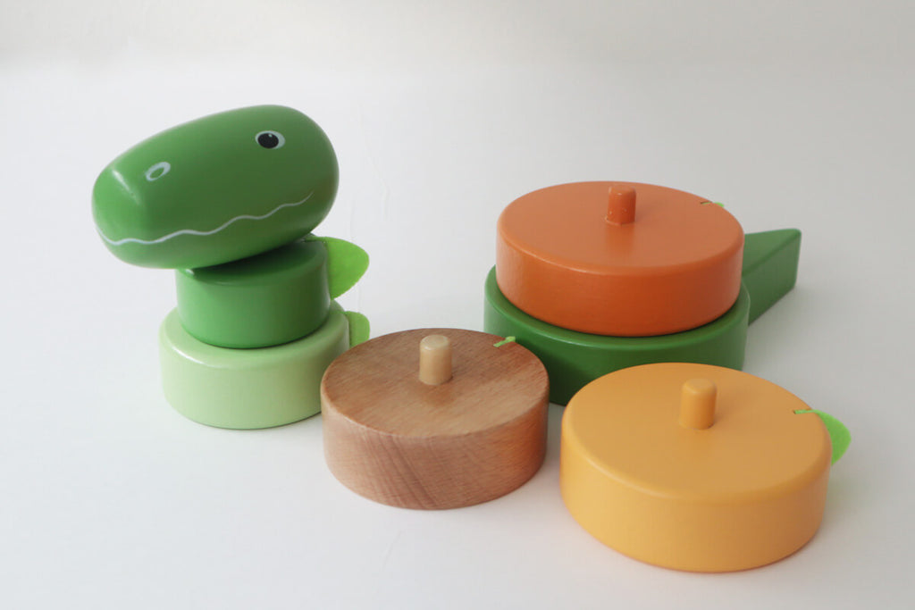 くりっとした優しい目と、いたずらが好きそうな口の形が愛くるしい表情をした“怖くない”恐竜の積み木です。丸みを帯びたたてがみはやや硬めのフェルトで出来ていて、触っても痛くありません。