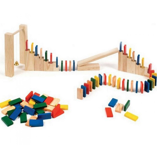 自由に組み合わせて楽しめる階段やハシゴ、コースのゴールに使える鈴の付いたアーチを駆使して、自分だけのオリジナルコースを作って遊べるドミノです。