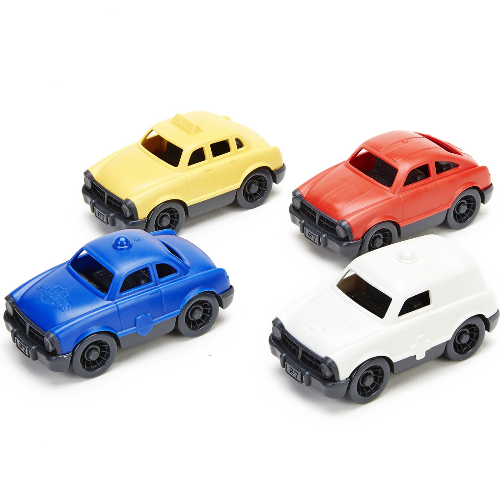 タクシー・パトカー・救急車・乗用車の4種類のクルマのミニカーが入ったセット