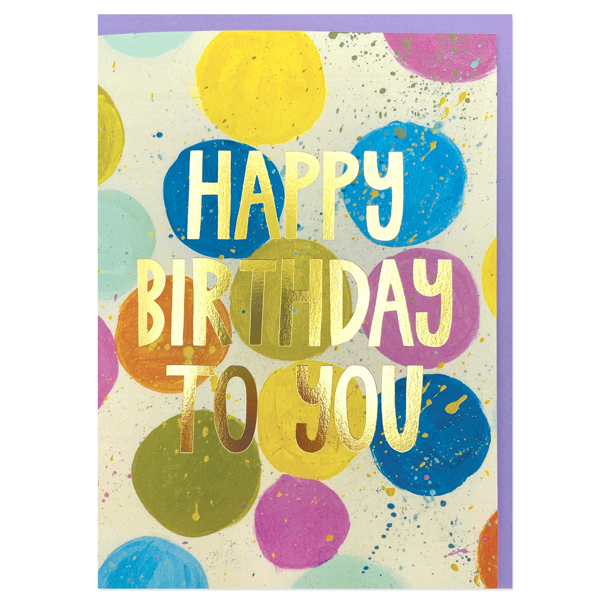 鮮やかな手描き風デザインに、ゴールド箔で仕上げられた「Happy Birthday to you」の文字が映える、華やかでスタイリッシュなグリーティングカードです。