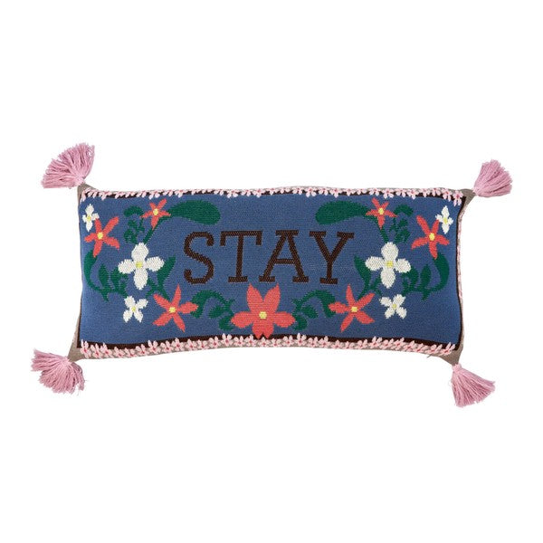 中央には「STAY」と書かれ、たくさんの美しい白色とコーラル色の花に囲まれています。