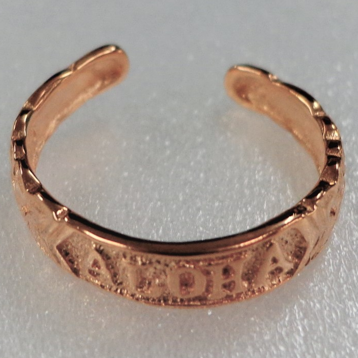 アロハの文字がきれいに彫られたデザイン。足の指はもちろん、関節リングとしてもとってもかわいいフリーサイズのリングです。