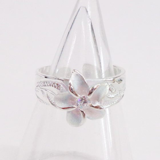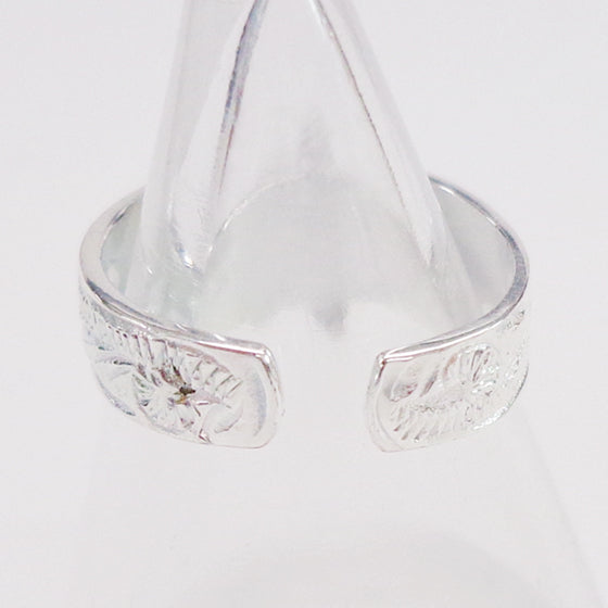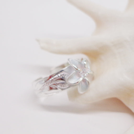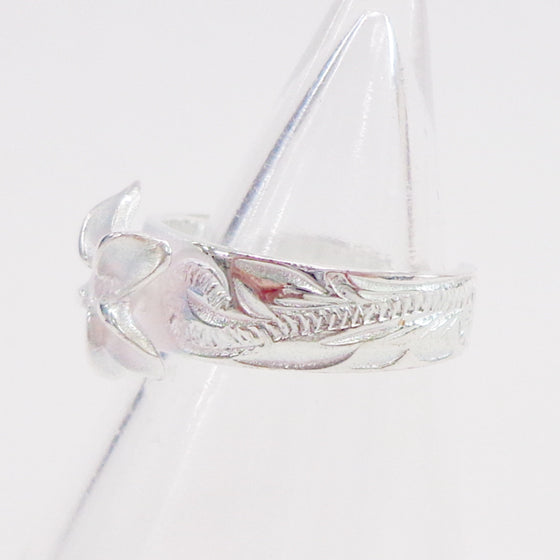 スクロールベースに立体的なプルメリアが付いたデザイン。足の指はもちろん、関節リングとしてもとってもかわいいフリーサイズのリングです。