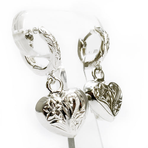 シンプルで上品なデザインに、ハートの刻印をあしらったデザインのピアスです。