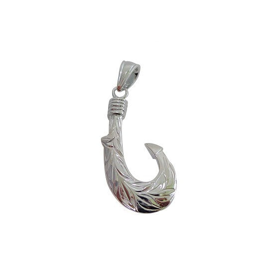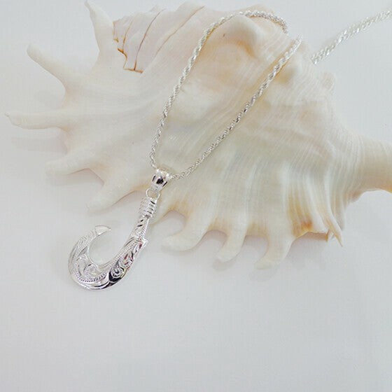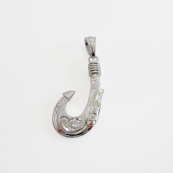 ゴージャスなレリーフが美しく、ハワイアンジュエリーを代表するスクロール(波)と、マイレという神聖な植物がデザインされたペンダントトップです。