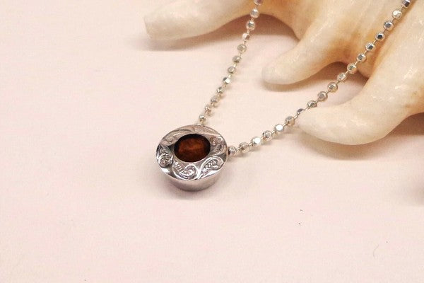 コアウッドの美しさとシルバーの光沢がミックスされ、ゴージャスな雰囲気を持つペンダントトップです。