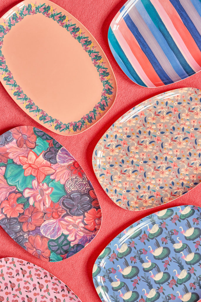 眺めているだけでもHAPPYな気分にさせてくれるメラミントレーは、ユニークで華やかな柄から、落ち着いたトーンのデザインまで幅広いバリエーションが人気です。
