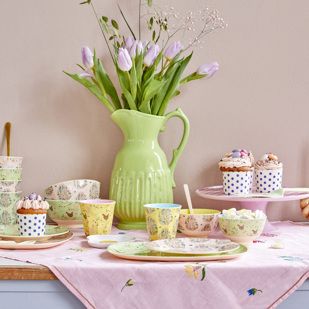 riceの定番、メラミン食器のプリントシリーズです。riceらしい個性的なプリント柄が可愛いです。単色のカップより厚みがあり、とってもしっかりしたカップです。