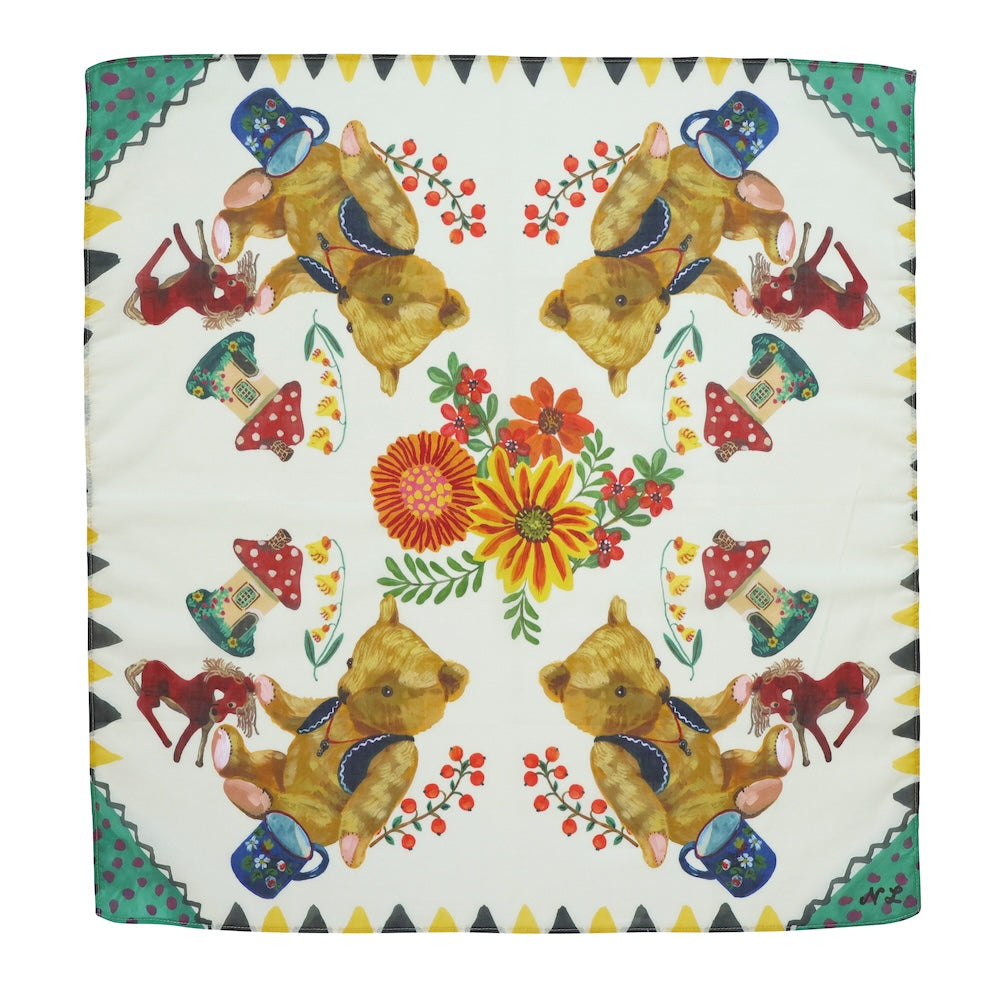 ナタリー・レテの描く、絵本の1ページのような、不思議で愛らしい世界をプリントした、60×60cmの大判ハンカチです。
