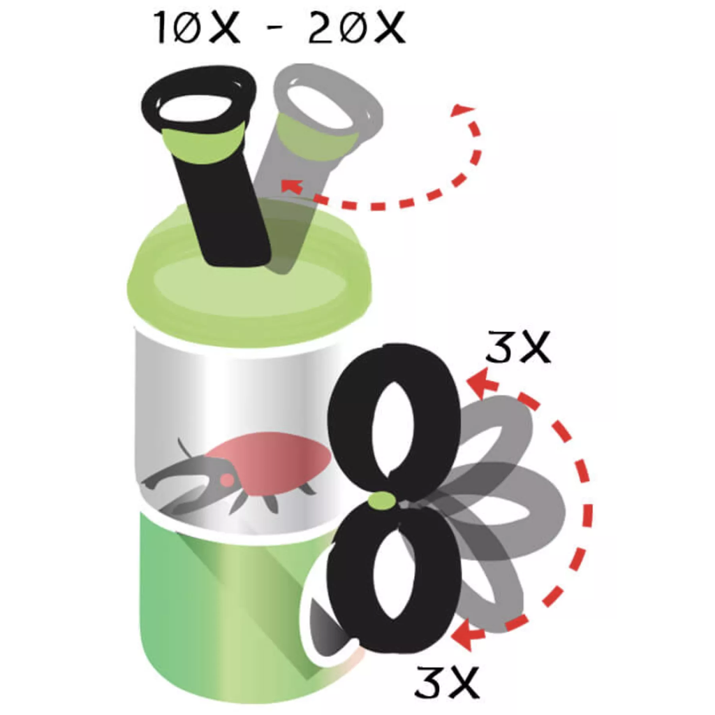 上からの観察は通常の10倍レンズに加え、アタッチメント式の20倍レンズも付属しています。横から、下からの観察は3倍スコープで観察することが出来ます。