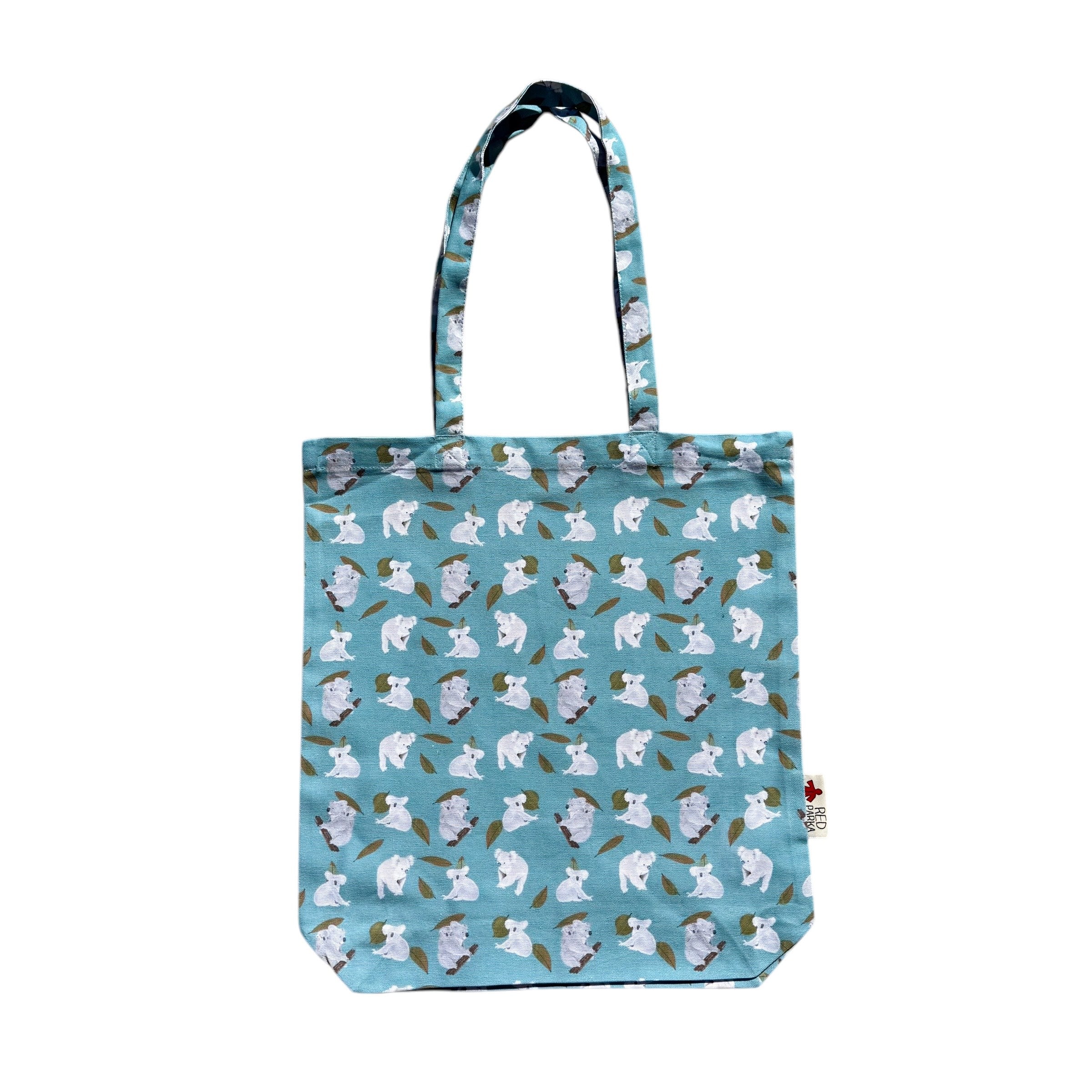 このトートバッグは100%リサイクルコットンを使用し、コアラのデザインが特徴です。