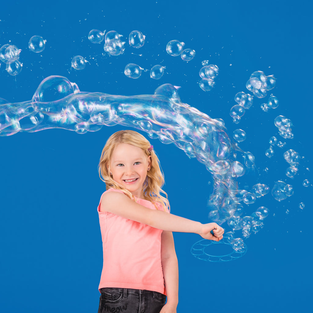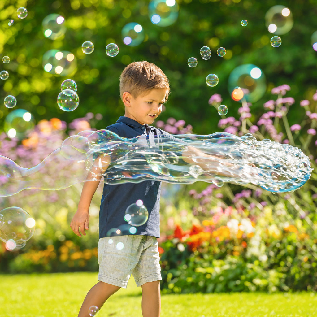 独自の研究と配合で作られたシャボン玉液は、割れづらく美しく、もし誤飲してしまっても安全なシャボン玉です。