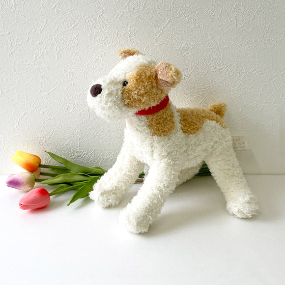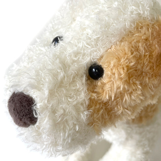 ベルギーのEgmont Toysエグモントトイズの仔犬のぬいぐるみエリオットは子どもが嬉しい時には喜んで見えたり悲しい時には一緒に悲しんでくれているようにあえて目に表情をつけない絶妙な配置で製造されています。