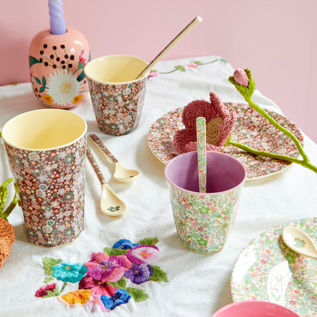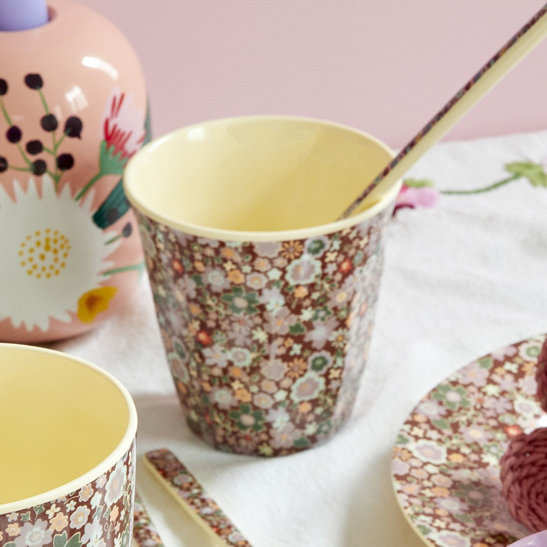 riceの定番、メラミン食器のプリントシリーズです。riceらしい個性的なプリント柄が可愛いです。単色のカップより厚みがあり、とってもしっかりしたカップです。