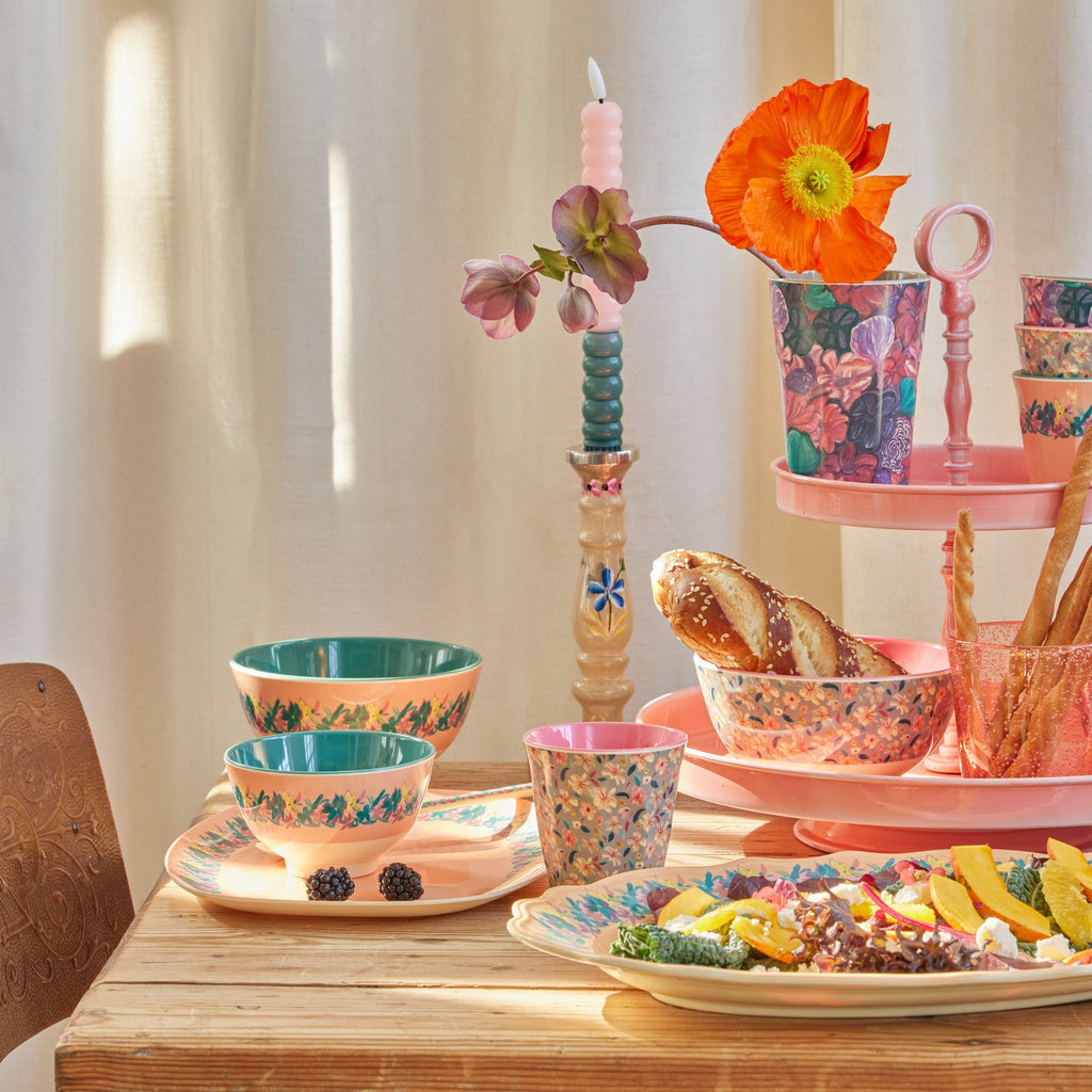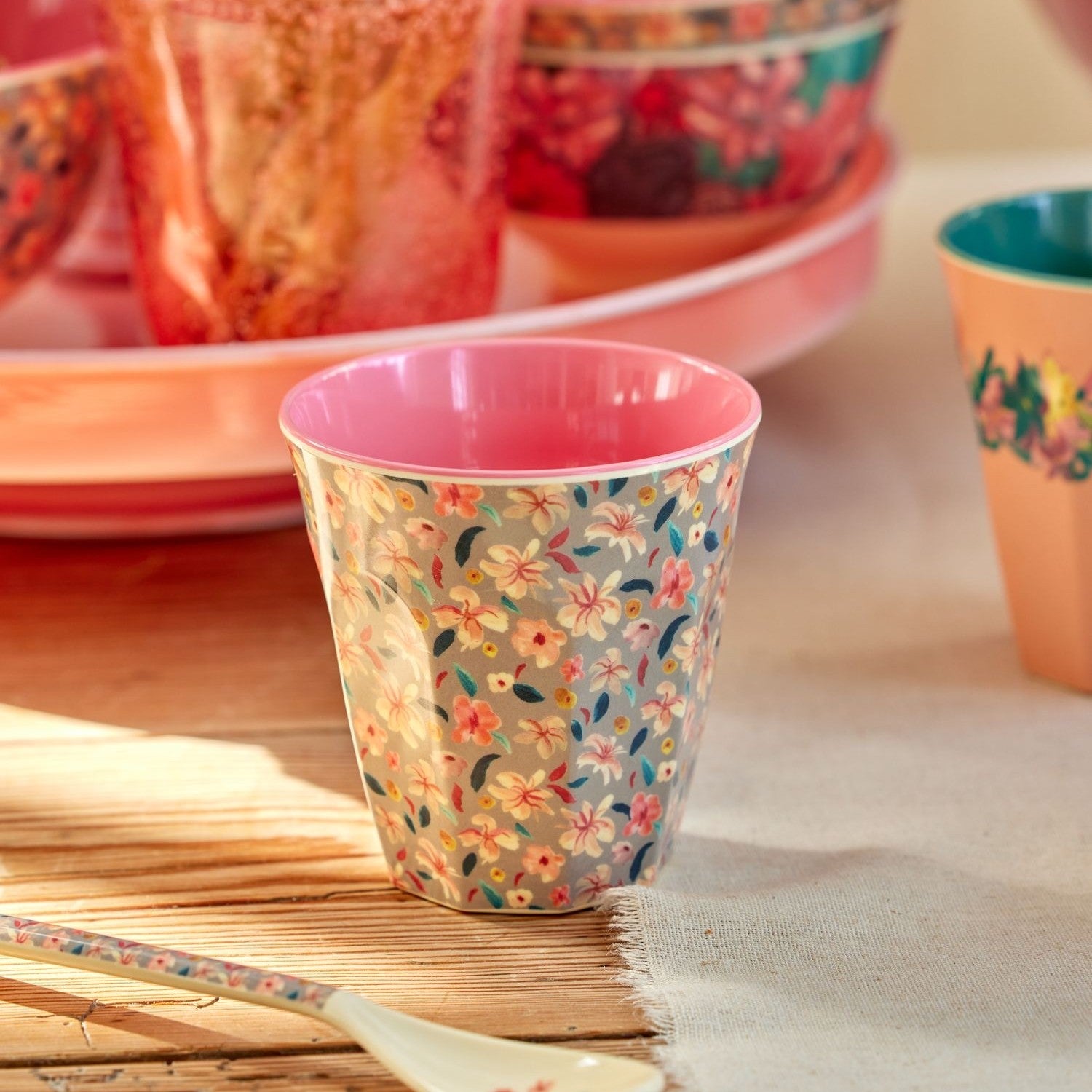 riceの定番、メラミン食器のプリントシリーズです。riceらしい個性的なプリント柄が可愛いです。単色のカップより厚みがあり、とってもしっかりしたカップです。