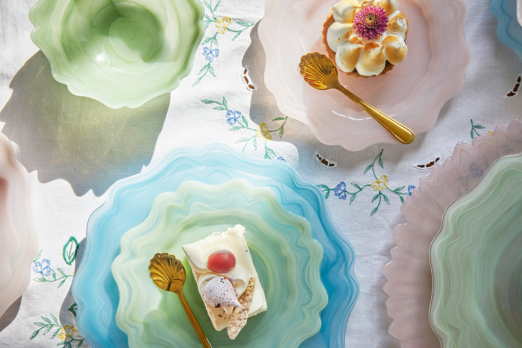 美しく光を通す、アラバスターガラスのテーブルウェア