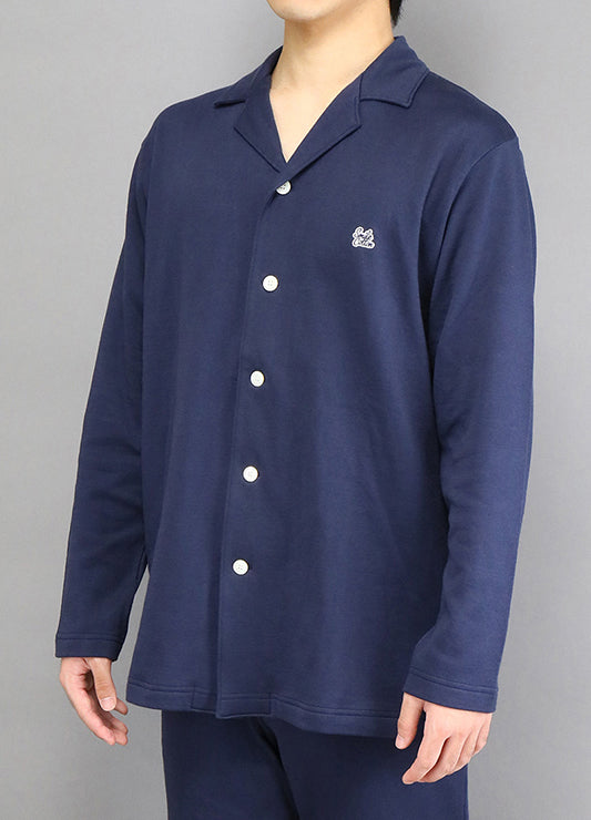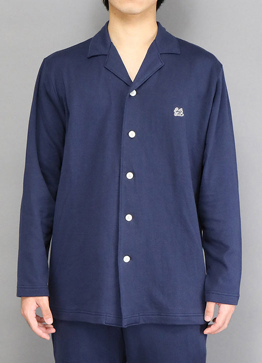 パジャマシャツは、ワントーンのシックなデザインで、オープンカラーでゆったりとしたシルエット。